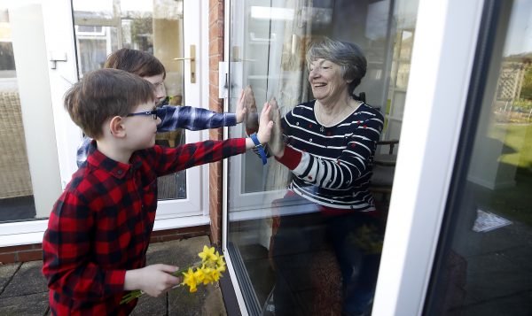 ചില്ല് വാതിലിനപ്പുറമുള്ള മുത്തശ്ശിയോട് സംസാരിക്കുന്ന ബെന്നും ഐസകും. മുത്തശ്ശിയും മുത്തശ്ശനും തങ്ങളുടെ വീട്ടില് സ്വയം ഐസൊലേറ്റ് ചെയ്ത് ഇരിക്കുന്നത് കൊണ്ടാണ് ചില്ലിനപ്പുറത്ത് നിന്ന് പേരക്കുട്ടികളോട് സംസാരിക്കുന്നത്.