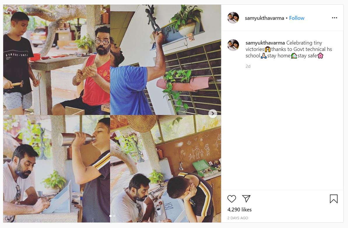 കൊറോണകാലം ആസ്വദിച്ച് ബിജുമേനോനും മകനും; ചിത്രങ്ങള് പങ്കുവെച്ച് സംയുക്ത വര്മ്മ